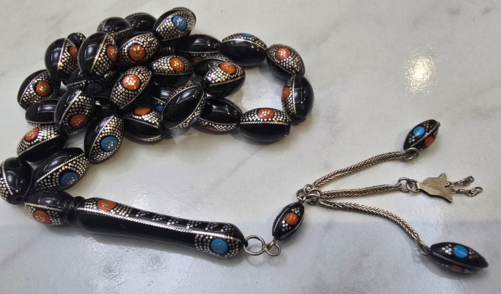 مسباح يسر فاخر مطعم بالفيروز و المرجان و الفضة YU12